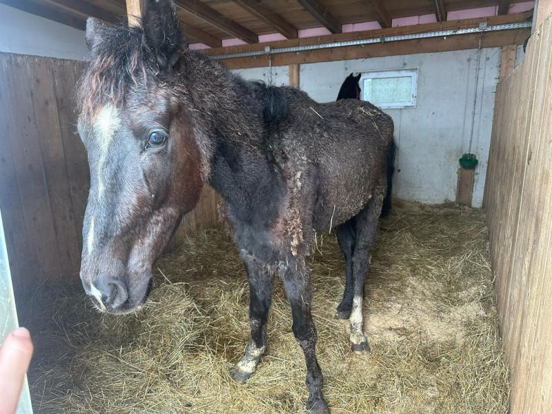 Stute, schwarz mit Blesse